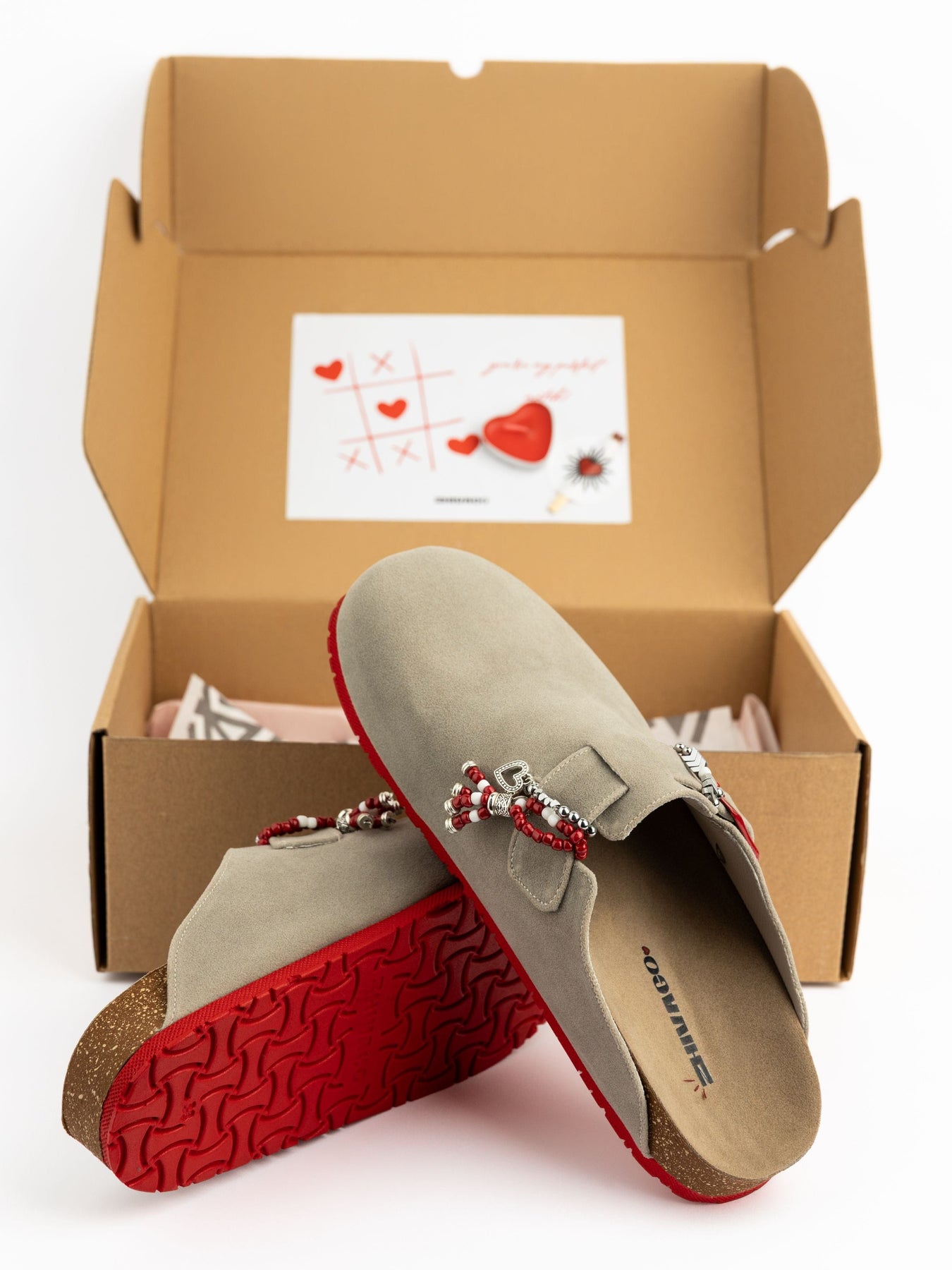 The ValenClogs Charm Edit are perfect for the upcoming Valentine's Day celebration. These clogs feature an embroidered heart shape design and come in a greige color. Limited edition, so grab yours before they're gone!
