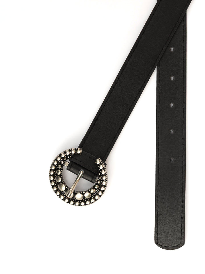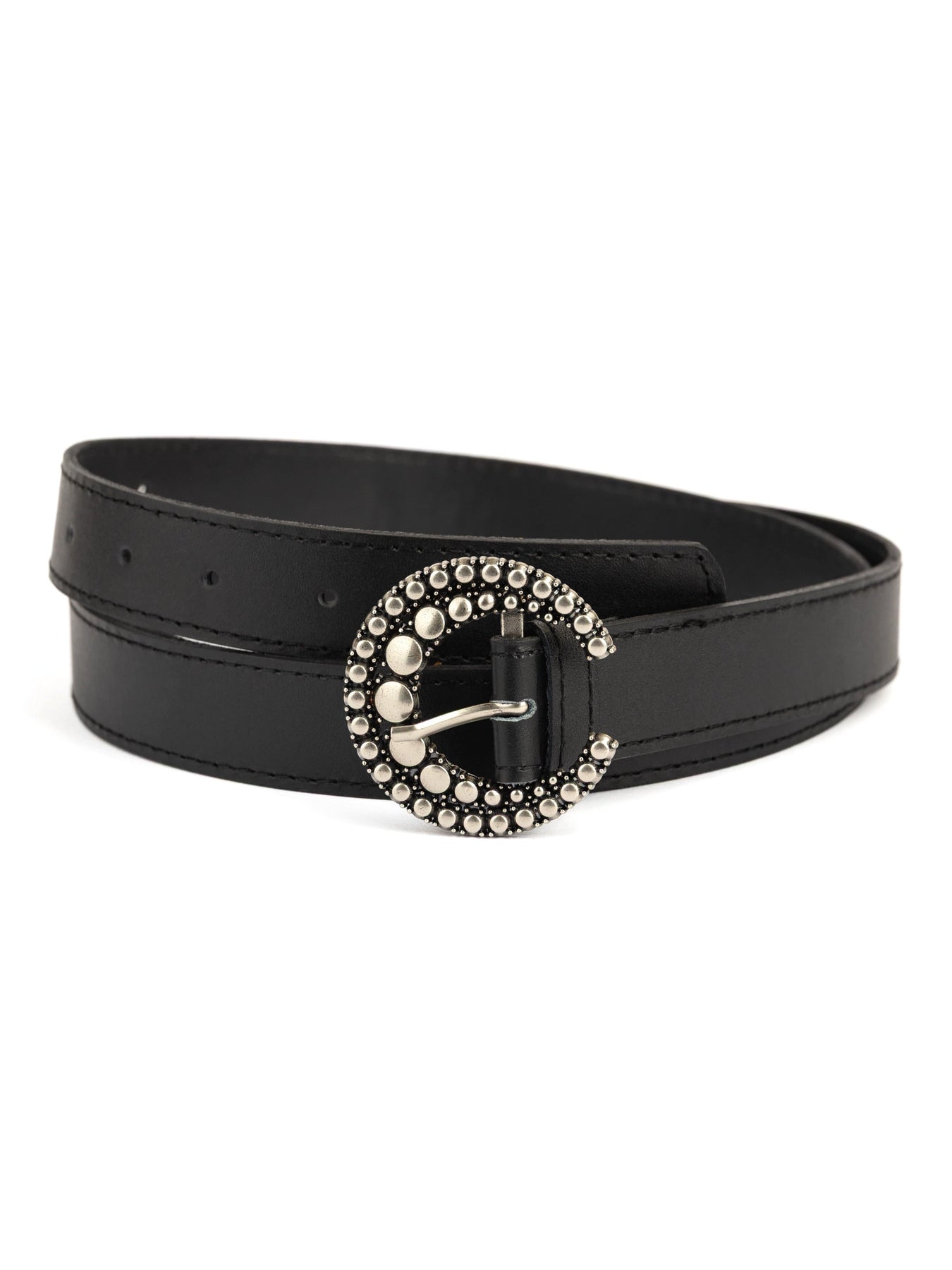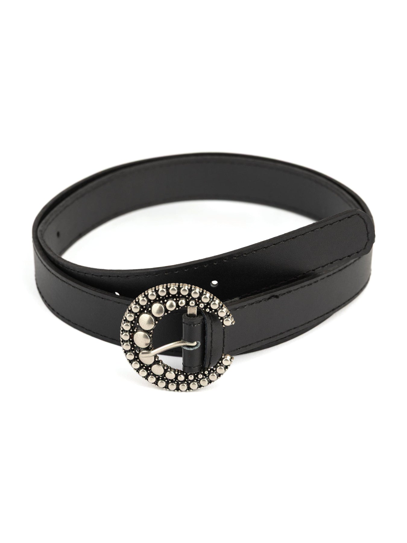 Made from genuine leather, the Vera belt features a sleek 2.5 cm width and a polished metal buckle. Its slim profile and timeless black finish make it a versatile piece for both casual and dressed-up looks.