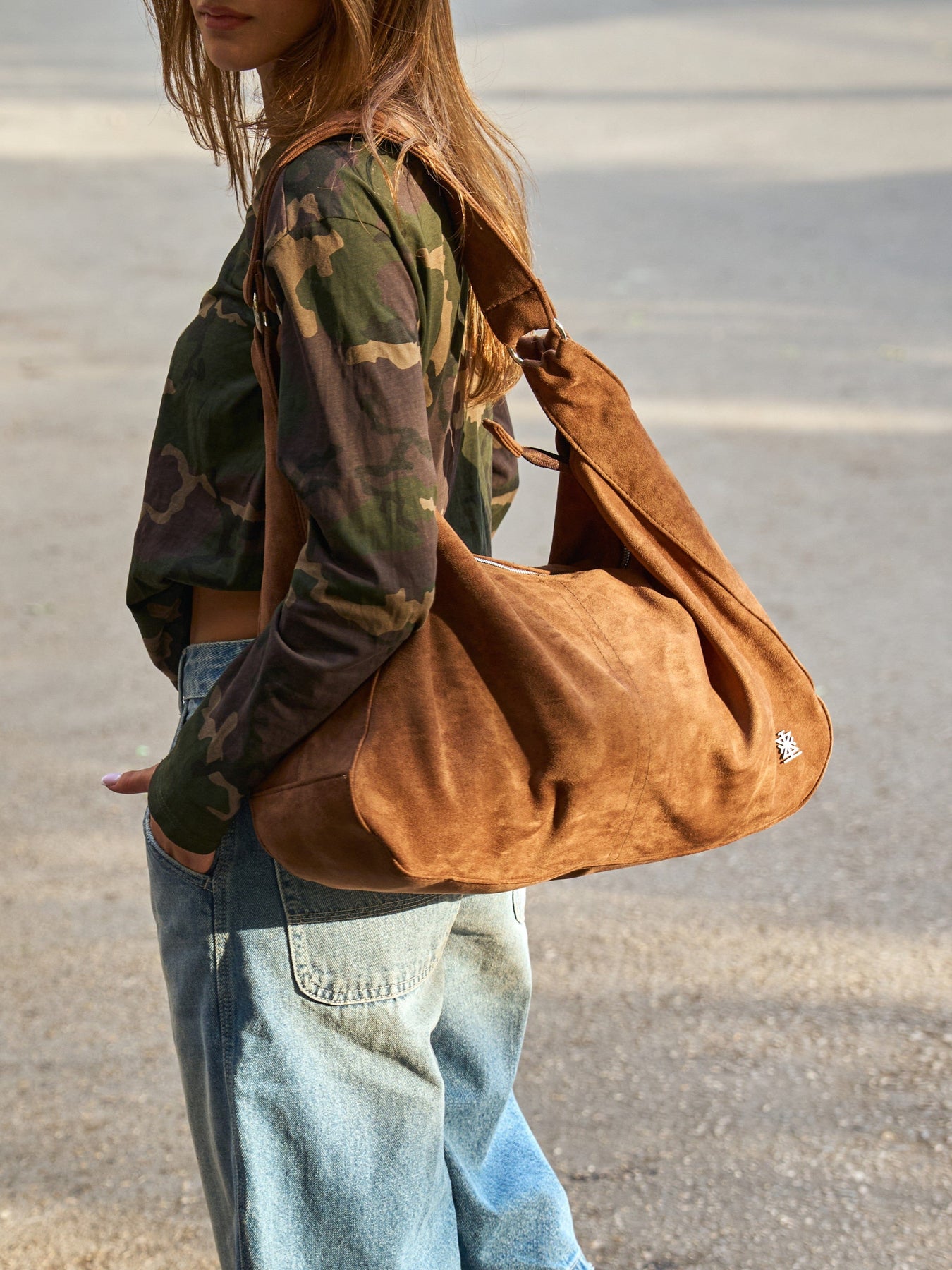 The Tula Brown Bag is a practical and stylish choice, made from soft faux suede material. Perfect for everyday use, the Tula Bag is both functional and fashionable.