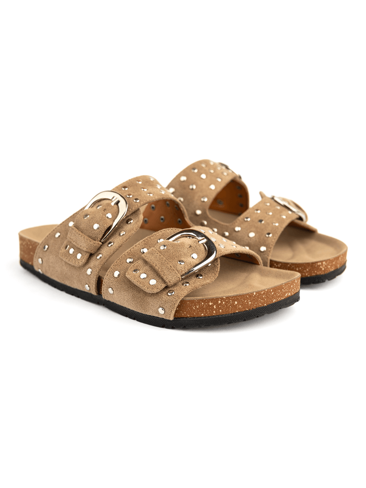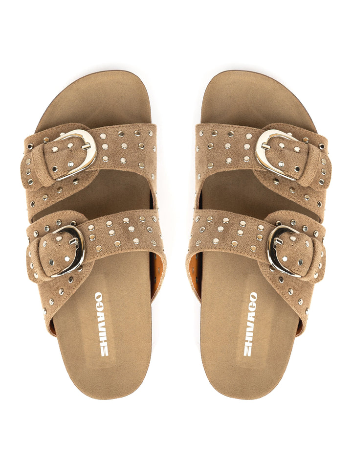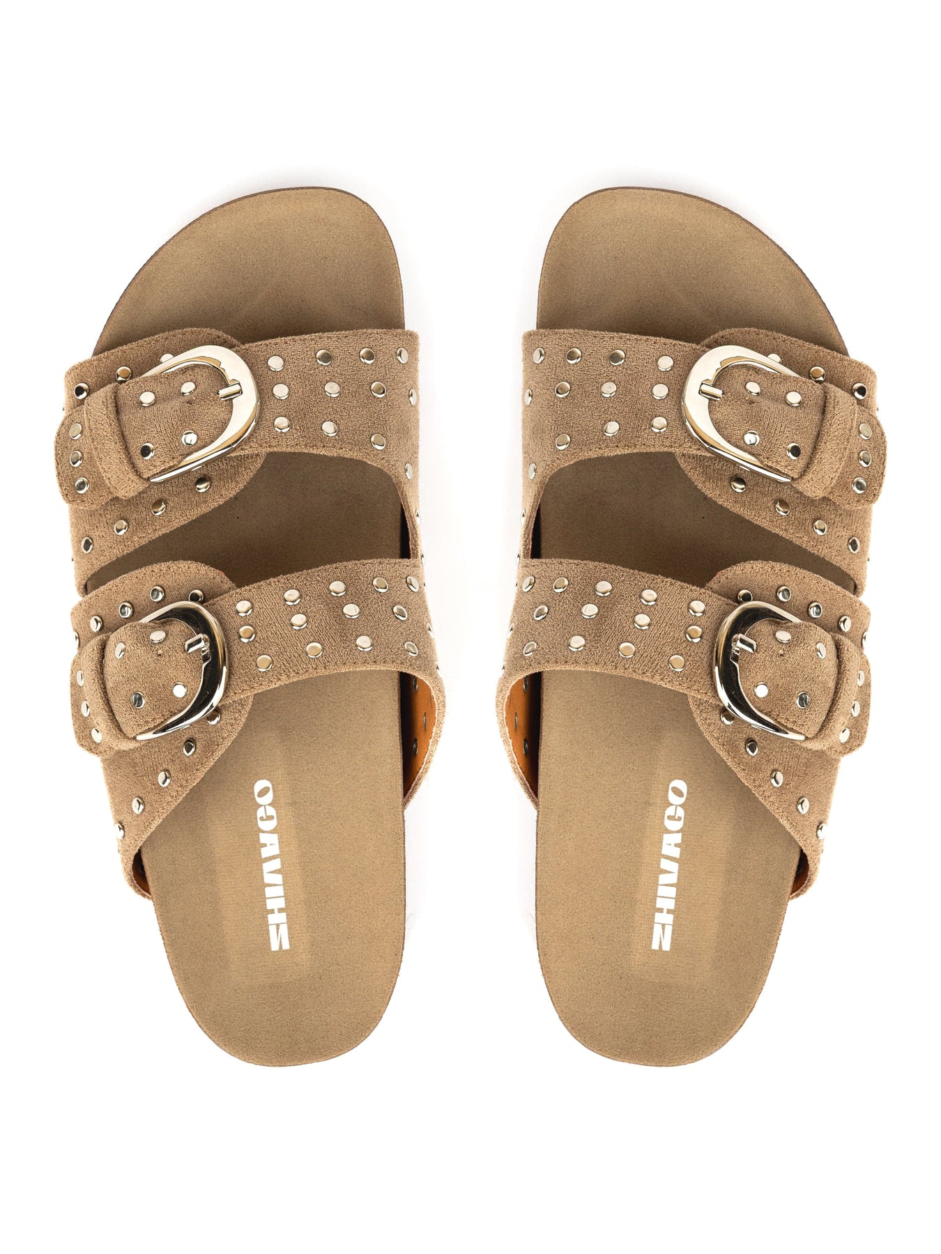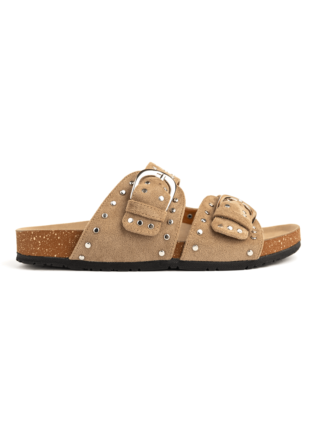 Experience summer elegance with the Vaya Beige women's slides, crafted from luxurious beige velvet material for a refined look. Featuring durable metal studs and a secure metal buckle, these sandals combine style with reliable fit. The soft sole ensures comfortable wear throughout warm days, making them an ideal choice for both casual and dressy summer occasions.