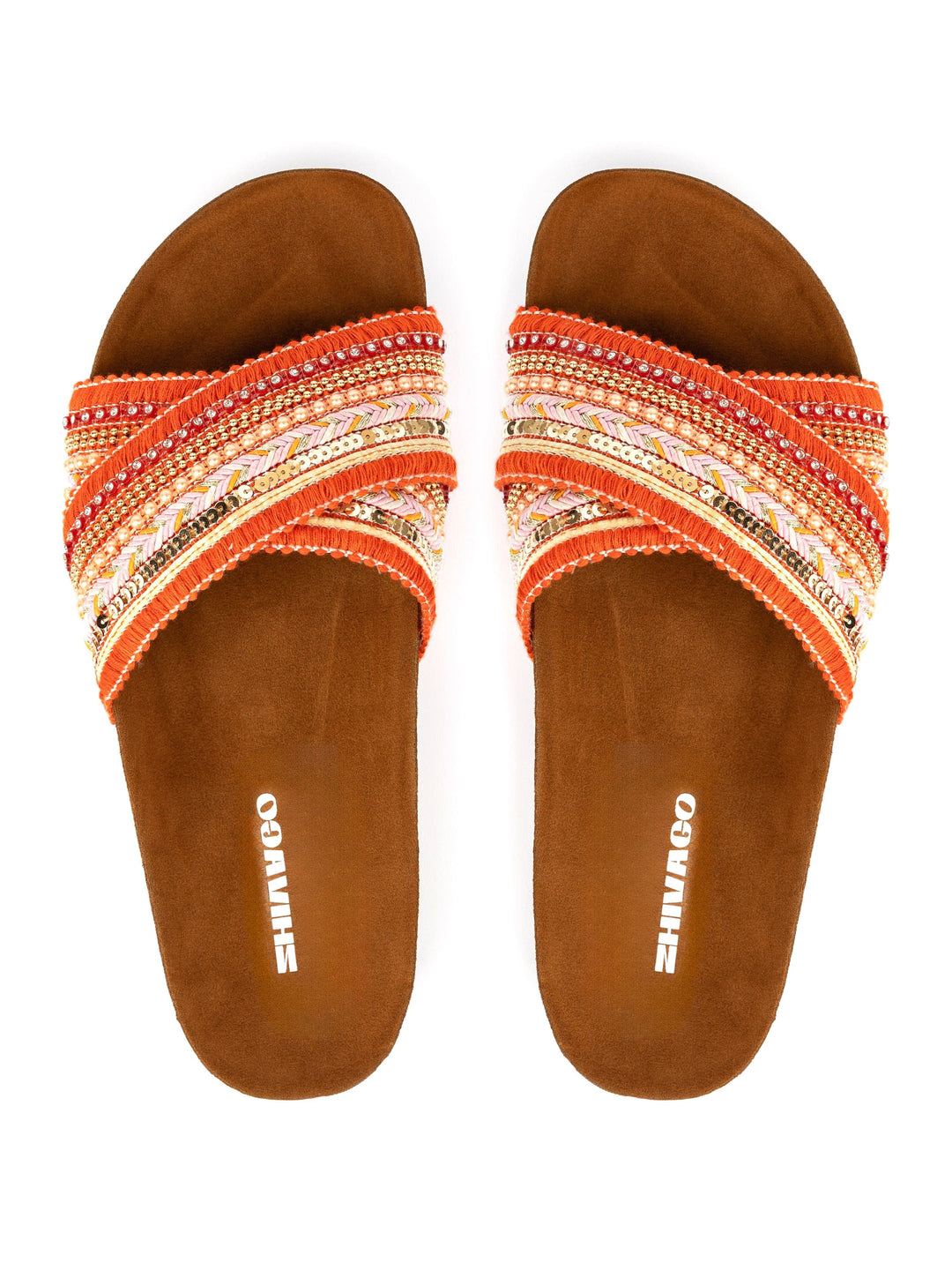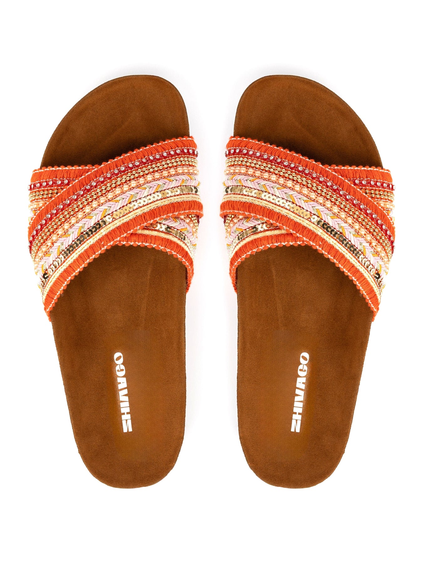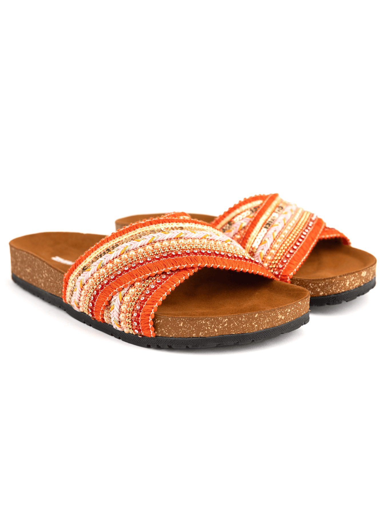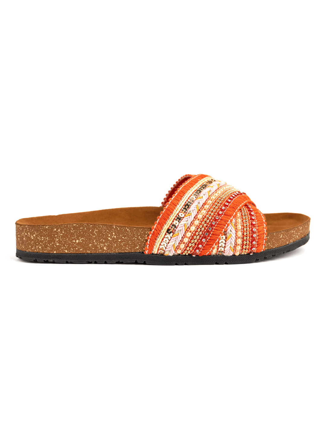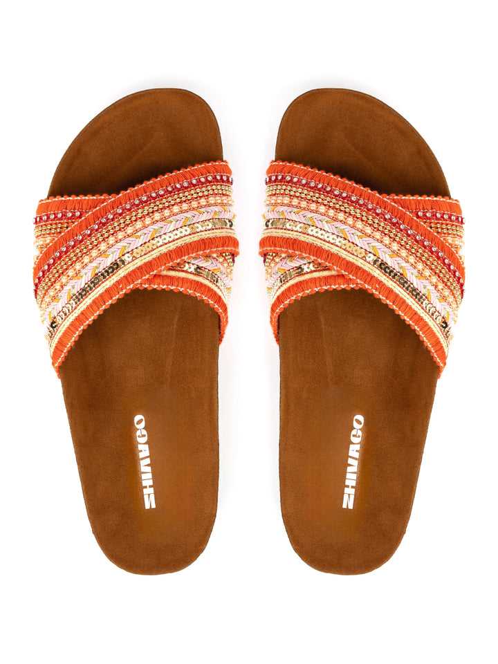 Introducing Vila Orange, a stylish and comfortable slide for your summer wardrobe. Crafted with a soft Italian Polyurethane footbed and a Velvet synthetic leather outer layer, Vila Orange is perfect for both indoor and outdoor activities. With its fabric, accessories, rope, and cotton fringes, enjoy a comfortable and fashionable look with Lucia.